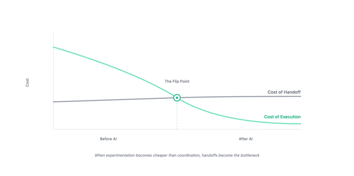 The fundamental shift: AI collapsed the cost of experimentation across product, design, and engineering. When experimentation becomes cheaper than coordination, handoffs become the bottleneck.